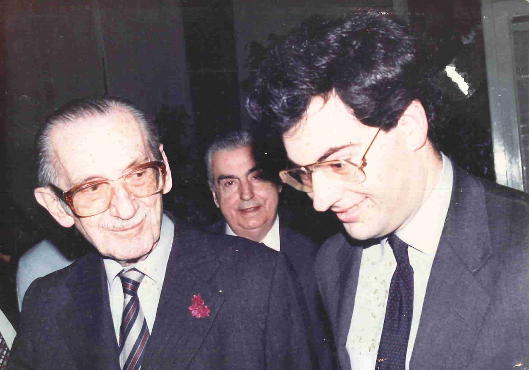 Dimitris Paraskevas, Chairman of the Rotaract Club of Kifissia welcomes Chairman of the Conservative Party E Averoff - Tositsas (1985)