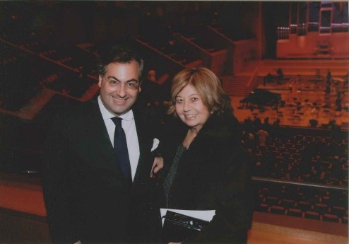 Dimitris Paraskevas with his mother, Kirki, at the Athens Concert Hall in the fund raising event they organised for the Thorax Foundation (Evaggelismos Hospital, Athens, the largest hospital in the Balkans), which had been co-founded by his father and Nobel laureate Odysseas Elytis (2011)